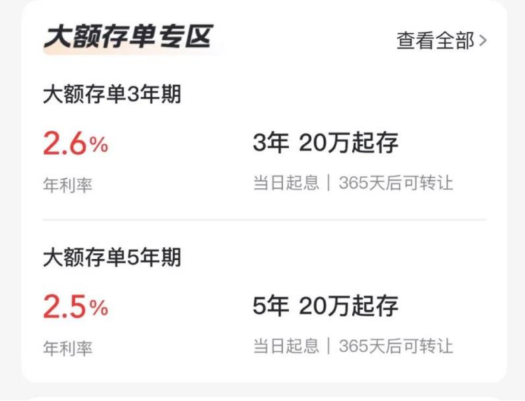 曾被视作高收益揽储利器的大额存单同样难逃降息潮。天津银行“幸福存单”3年期利率降至2.05%,逼近“1时代”;蓝海银行3年期大额存单利率下调至2.3%,与2年期产品持平;锡商银行3年期大额存单利率(2.6%)甚至高于5年期(2.5%)。这一调整趋势显示,银行正通过压缩长期负债成本应对息差压力。